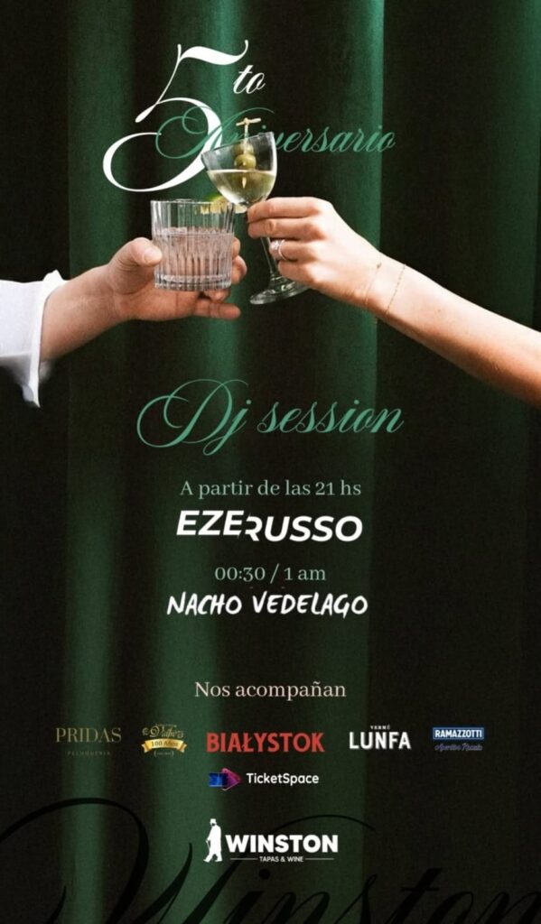 Se hará el 5° aniversario de Winston, con Eze Russo. Winston Bar (Cárcano 476)