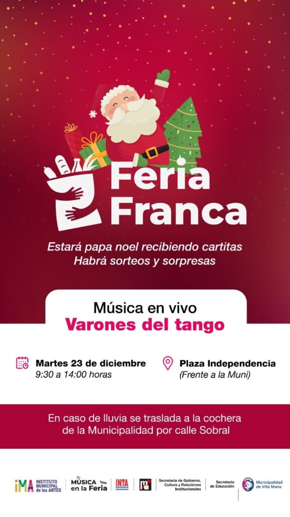 Se hará la Feria Franca con Varones del Tango en vivo.
