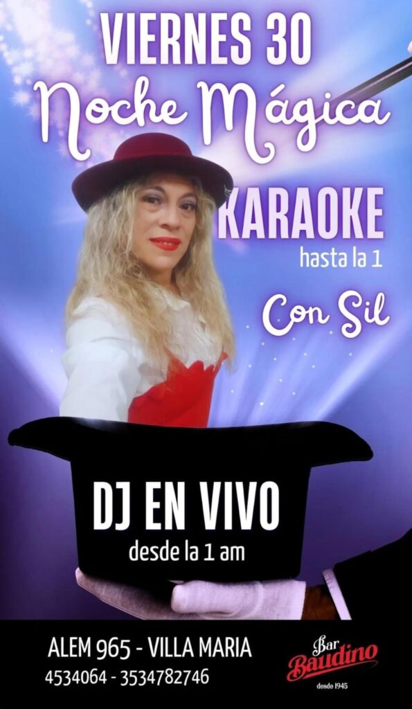 Este viernes Bar Baudino te espera con noche de KARAOKE «con Sil» + Pizza LIBRE y DJ en VIVO.