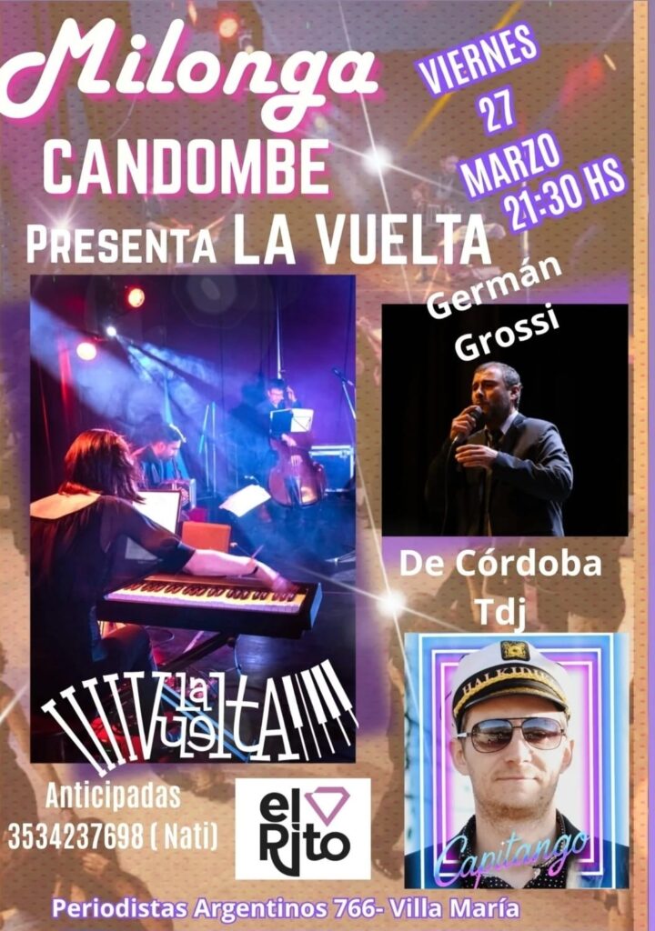 Se realizará la milonga candombe con el grupo La Vuelta. El Rito (Periodistas Argentinos 766)