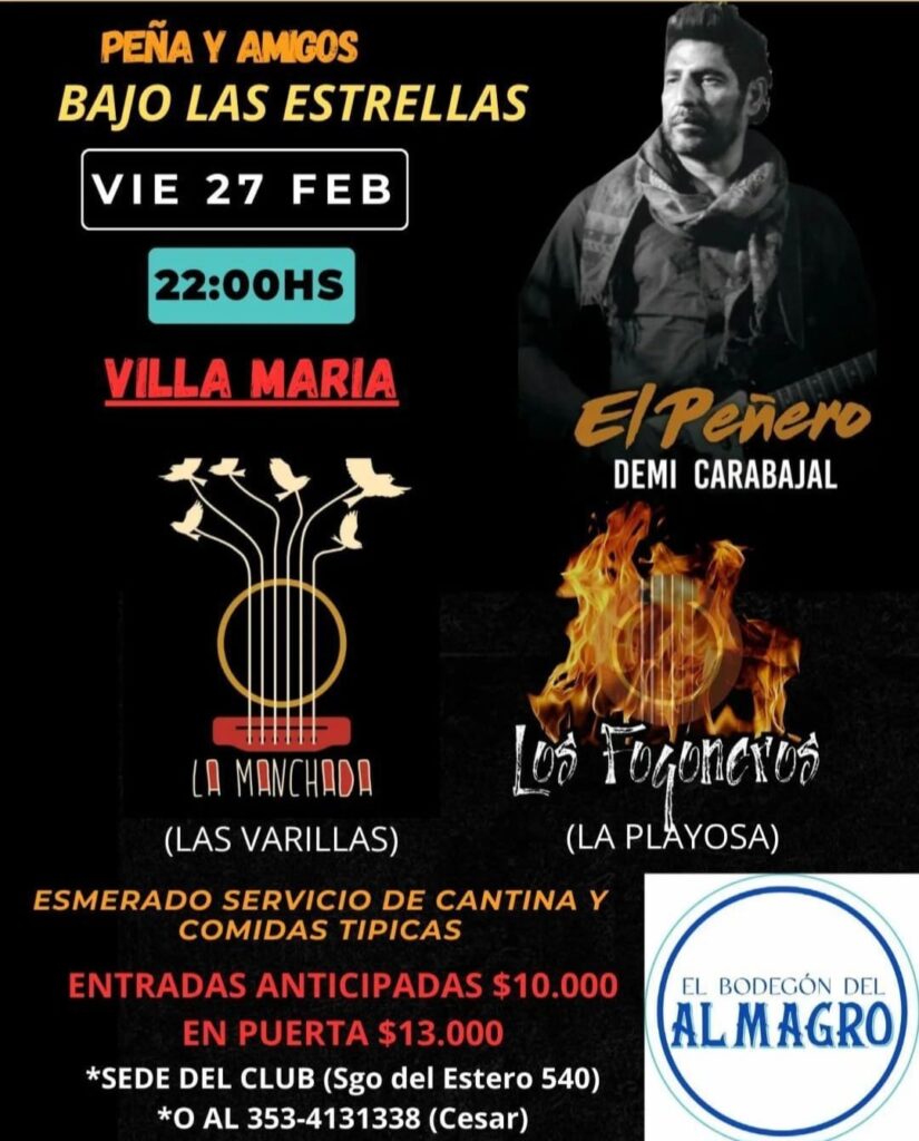 El Bodegón «El Almagro» te invita a la peña y amigos bajo las estrellas con la presencia de «Demi Carabajal» este viernes!