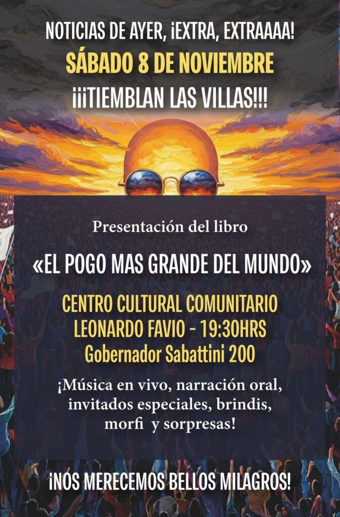 Se presentará el libro «El pogo más grande del mundo» de Chalo Flores. Con música en vivo e invitados.