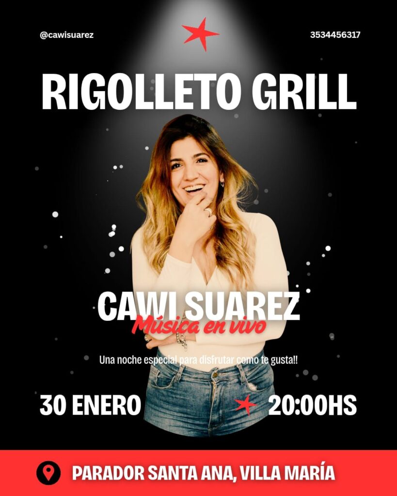 Actuará Cawi Suárez. Rigoletto Grill (parador playa Santa Ana)