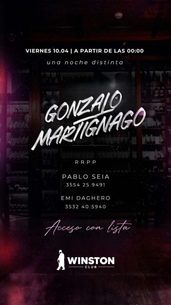 Una noche distinta en Winston 🎧 Dj Gonzalo Martignano 🍸 Gin Tonic de bienvenida de 00:00 a 2:00 hs. Winston Bar (bv Cárcano 476)