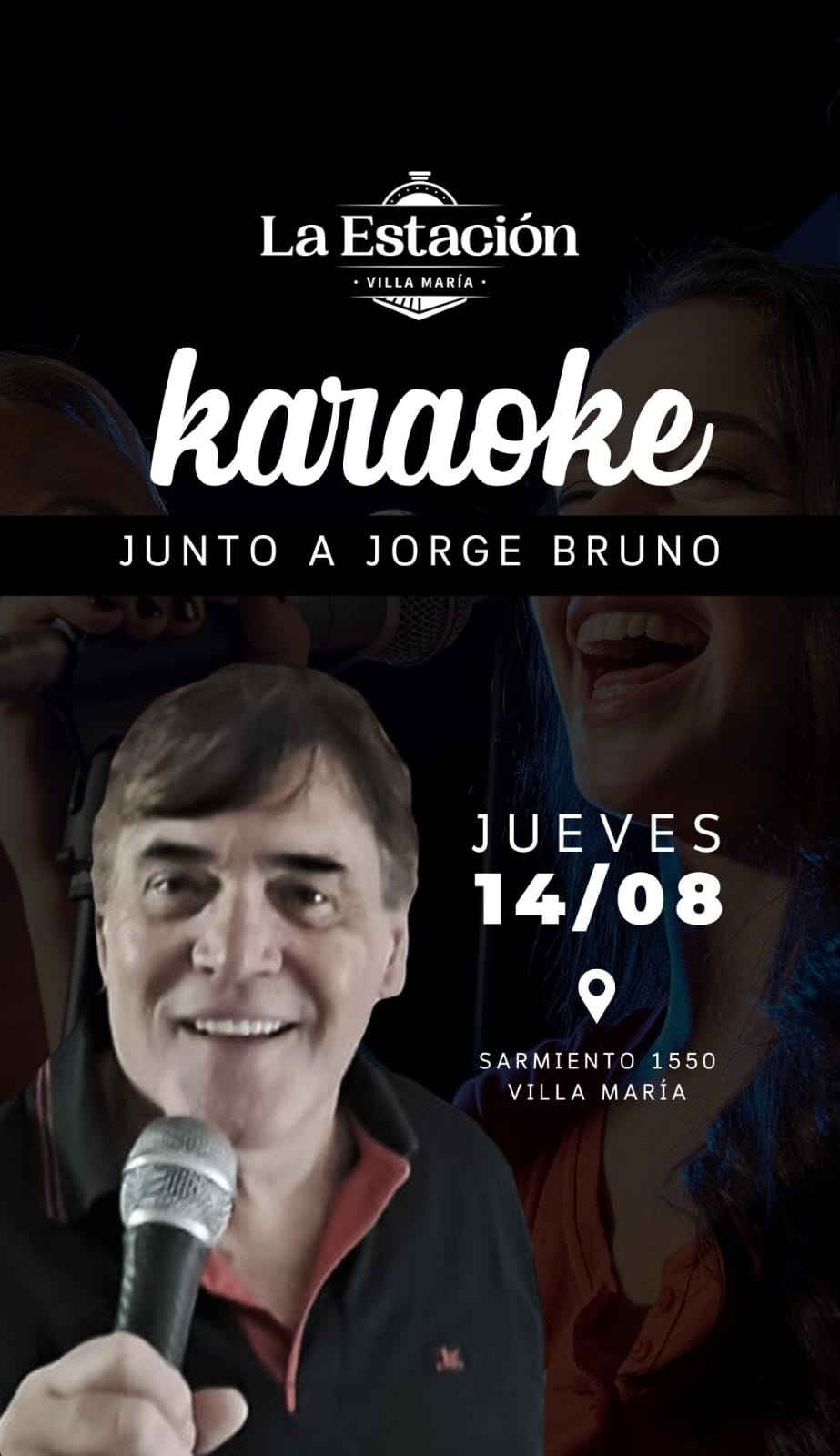 Jueves de karaoke junto a Jorge Bruno. ¡Arranca la semana cantando a todo pulmón! Vení al karaoke y elegí tus temas favoritos para brillar en el escenario junto a Jorge Bruno.
