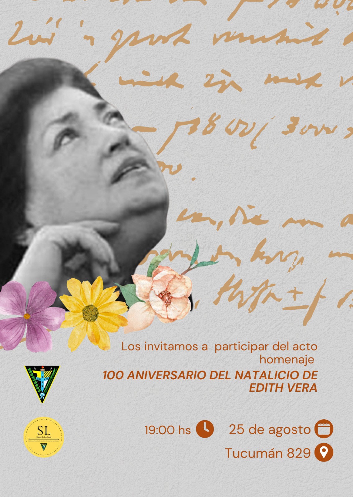 En el marco del aniversario por los 100 años de Edith Vera. El instituto Rivadavia los invita a participar del acto homenaje. |