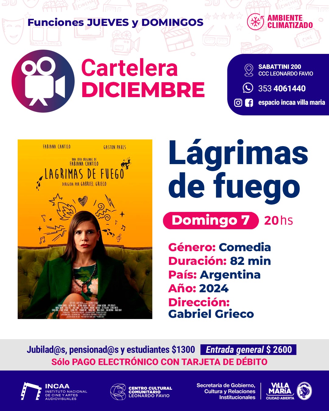 Tras pasar cuatro años internada en una clínica psiquiátrica y con una fuerte fobia al fuego, Laura es dada de alta. Con Fabiana Cantilo, Gastón Pauls e Inés Estévez. Comedia y drama de Gabriel Grieco. Espacio INCAA (Sabattini 200)