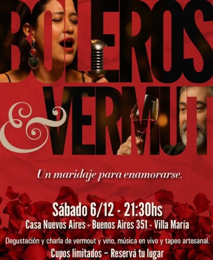 Un maridaje para enamorarse: música en vivo, degustación de vinos y vermut, con Leti Soria en voz, Gonza Carrión en guitarra y el sommelier Pablo Fiorito. Casa Nuevos Aires (Bs As 351)