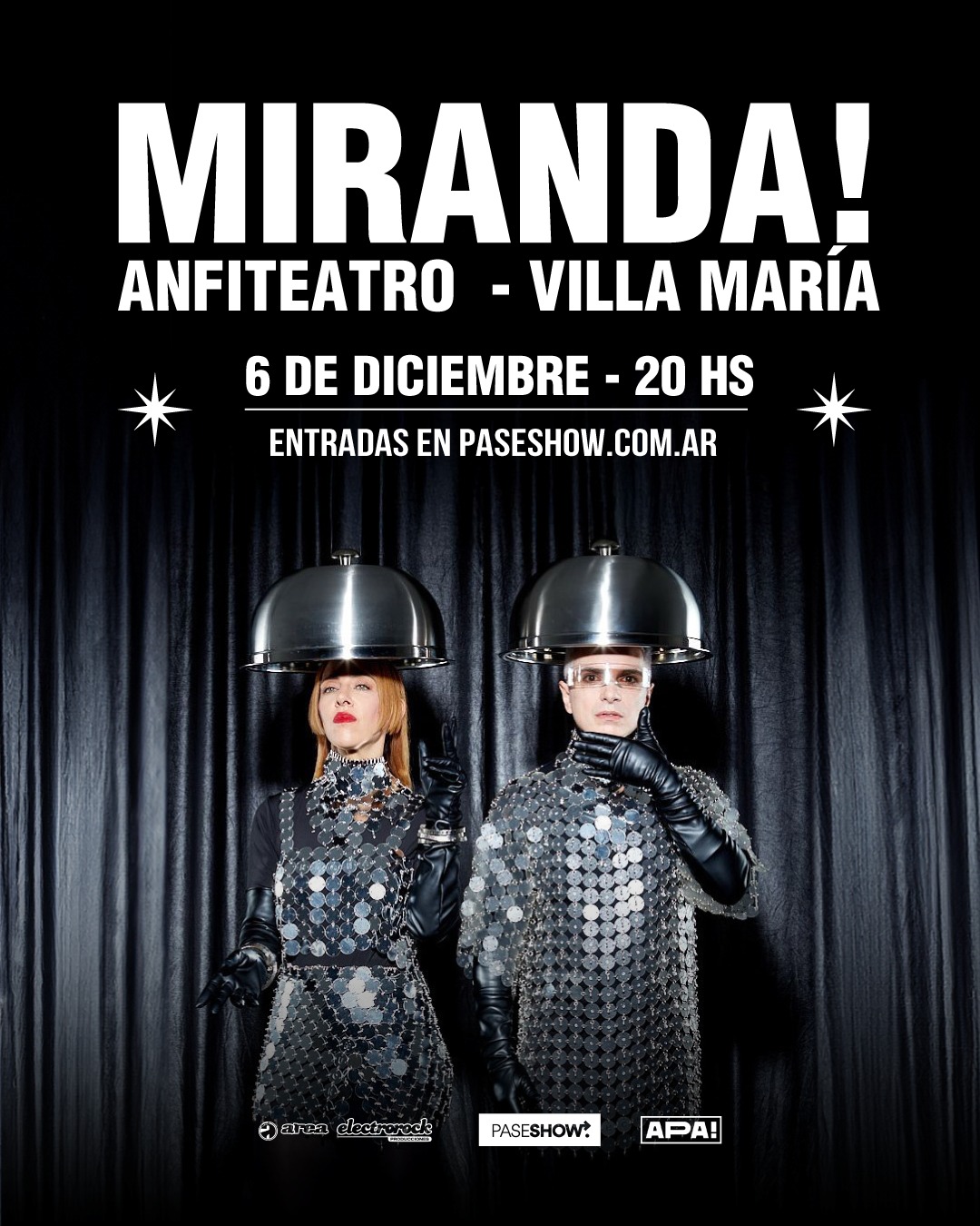 Llega a villa María el dúo pop más importante de Latinoamérica @mirandaenvivo con "Nuevo hotel Miranda!!!" Anfiteatro Municipal (E González 193)