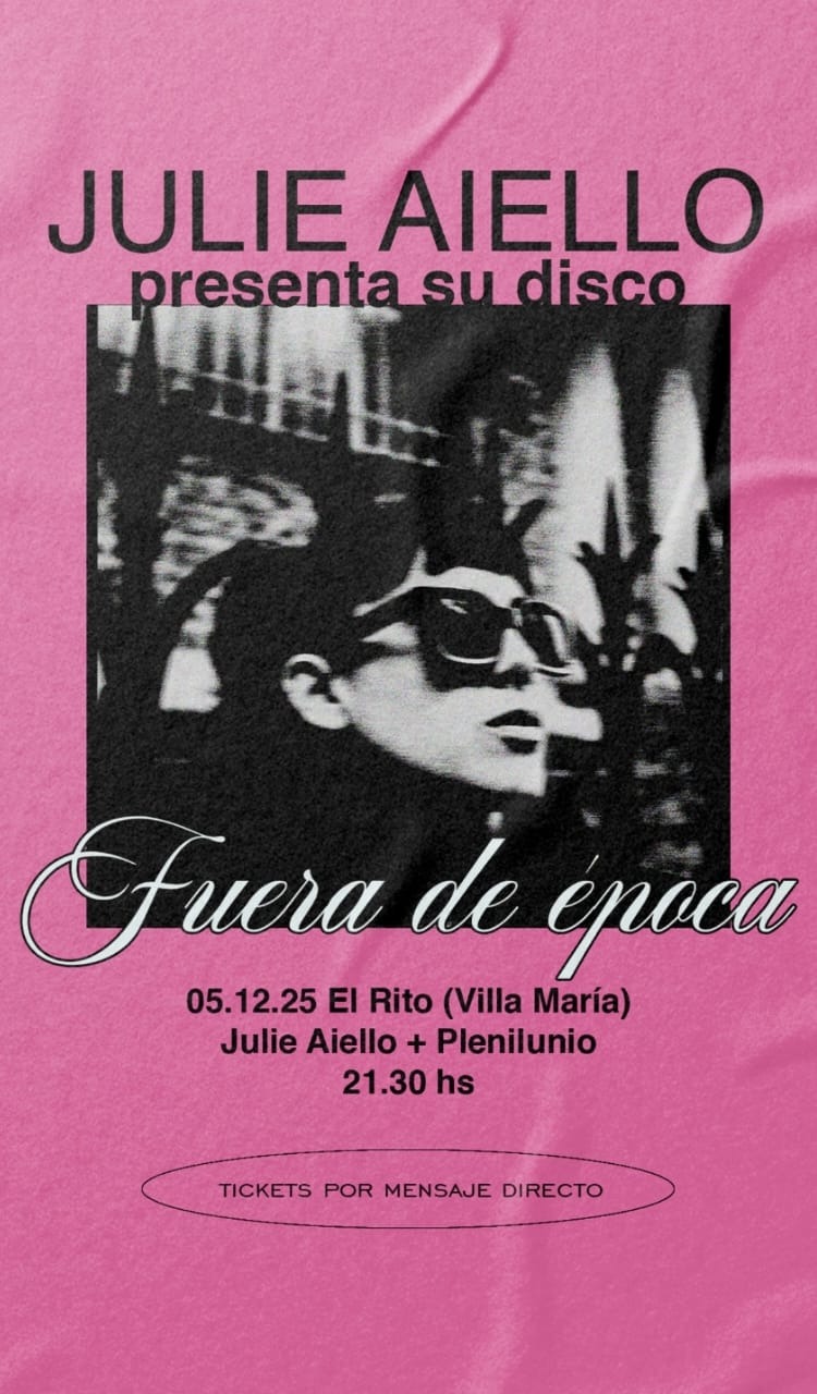 La cantante local Julie Aiello presentará su nuevo álbum "Fuera de época", con Plenilunio de invitada.El Rito (Periodistas Argentinos 766)