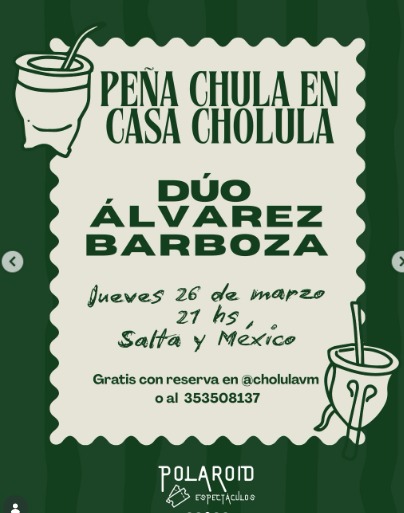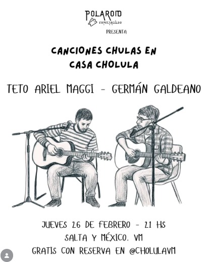 Actuará Fogón Set, con Ignacio Stanfield y Valentín Almada. Casa Cholula (Salta y México) |
