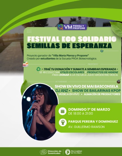 Recolectarán útiles y productos de higiene para la Escuela Julio A Roca. Más show de Mai Basconsela, Dj Anz y bailarinas Kpop. Parque Pereira y Domínguez (sobre av Rawson) Gratuito
