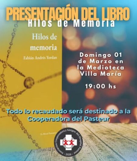 En la Medioteca de Villa María se realizará la presentación de un libro muy especial, y todo lo recaudado por la venta será destinado a la Cooperadora del Hospital Pasteur. Por Fabián Yordan. Medioteca (Sabattini 40)