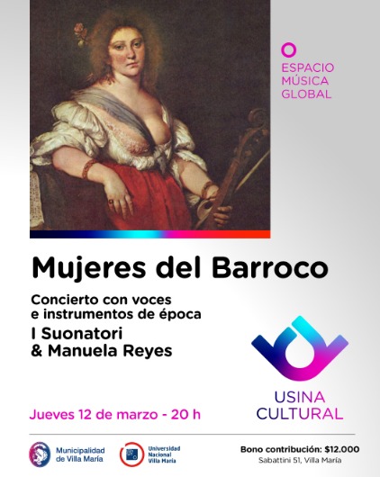 Un concierto dedicado a compositoras del período barroco, del siglo XVII, entre ellas Barbara Strozzi. Por el conjunto I Suonatori y la mezzosoprano Manuela Reyes.Usina Cultural (Sabattini 51)