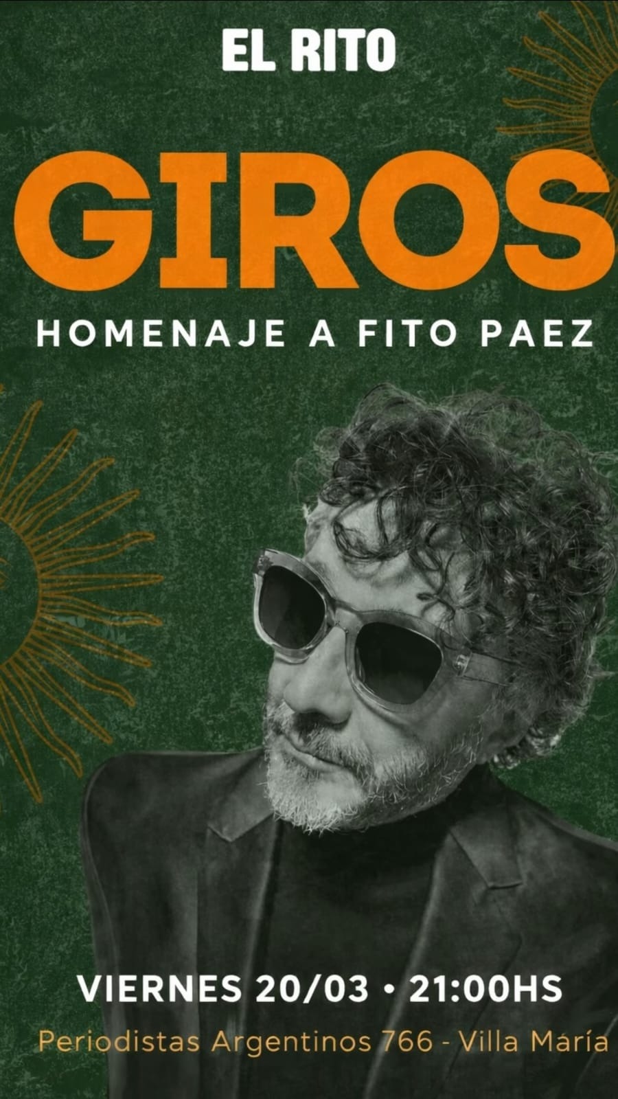 Actuará Giros, tributo a Fito Páez. El Rito Resto Bar (Periodistas Argentinos 766) |