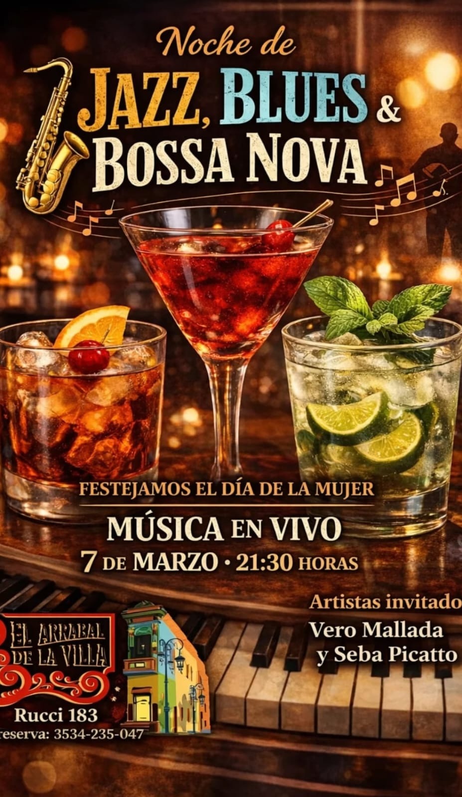 Mucho Jazz, Blues, Bossa Nova, algo para picar y una barra de tragos 🍸🍹🥃 Artistas invitados: @malladavero @sebapiccatto. El Arrabal de la Villa (Rucci 183)