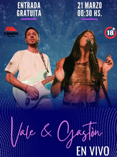 Todos los hits del rock nacional y mucho mas de la mano de Gastón Chiavazza y Valentina Buffa. Casino Villa María (av Yrigoyen 329) |
