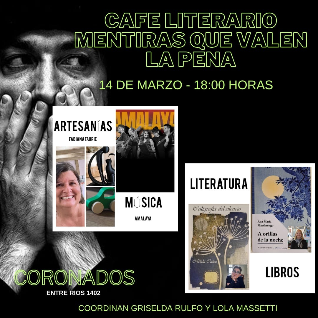 Se realizará un nuevo café literario "Mentiras que valen la pena", con escritoras, música en vivo y artesanías. Coronados (E Ríos 1402)