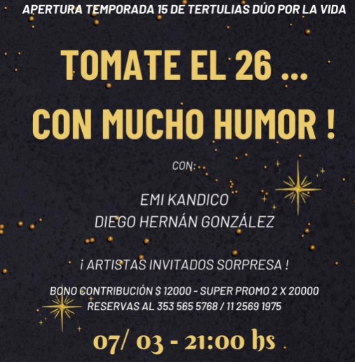 Apertura oficial de la Temporada 15 de Tertulias Dúo por la vida !! "Tomate el 26 con mucho humor" Espacio Dúo por la Vida (Sabattini 349)
