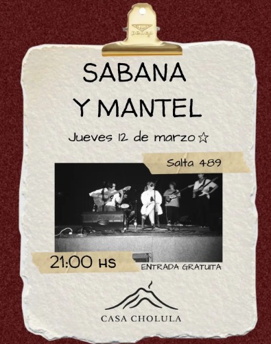 Sábana y Mantel en un formato acústico e intimo donde a través de la música volveremos a nuestras raíces. Casa Cholula (Salta y México) Gratuito
