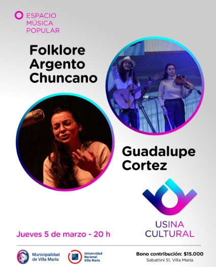 El Espacio Música Popular abre el mes con Folklore Argento Chuncano y Guadalupe Cortez. Usina Cultural (Sabattini 51)