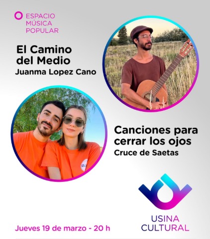 El Camino del Medio por Juanma López Cano de Bs As y Canciones...por Cruce de Saetas, de Madeline (voz y saxo) y Ezequiel (guitarra y coros). Usina Cultural (Sabattini 51)