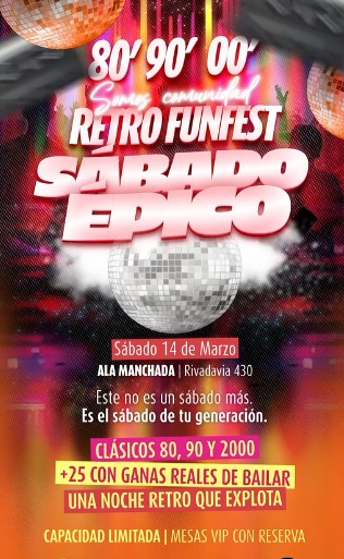 Los clásicos 80, 90 y 2000 vuelven a sonar como se debe. Sin poses. Sin filtros. Solo +25 con ganas reales de bailar. Ala Manchada (Rivadavia 430)