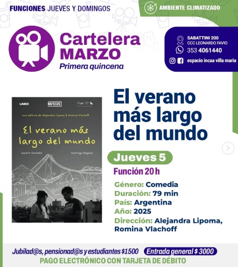 En vísperas del 8M Día Internacional de la Mujer Trabajadora. 💜 Proyección de la comedia realizada por dos directoras en nuestra provincia de Córdoba: María Alejandra Lipoma y Romina Vlachoff. Espacio INCAA (Centro Favio, Sabattini 200)