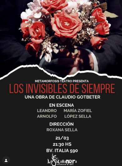 Obra de de Claudio Gotbeter. Solo 2 actores · 100 % verdad. Con María Zofiel López Sella y Leandro Arnolfo en escena. Dirección: Roxana Sella. La Salamandra (bv Italia 590)